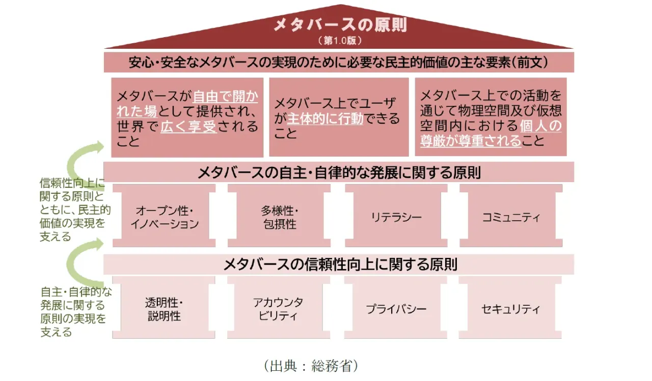 同省は、有識者15名による公開研究会「安心・安全なメタバースの実現に関する研究会」を3年間にわたり実施し、その成果を報告書として毎年公表してきた。この報告書には、プラットフォーム事業者をはじめとする関係者に向け、ユーザーの権利保護を目的とした「メタバースの原則」が盛り込まれている。当初はVRを対象としていたが、現在ではARやMRにも適用範囲を拡大。エンターテインメント領域にとどまらず、産業や教育といった多様な分野での利活用を想定した内容に修正されている。