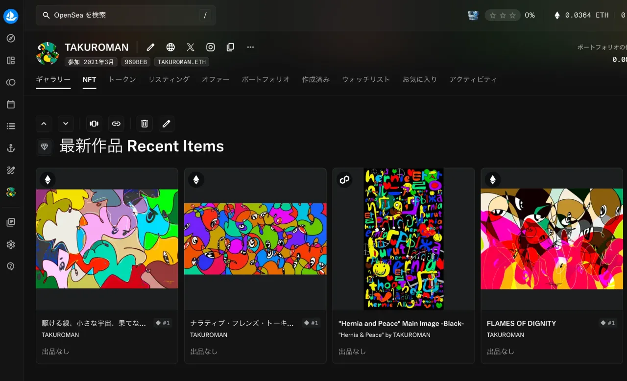 OpenSeaのアカウント画面