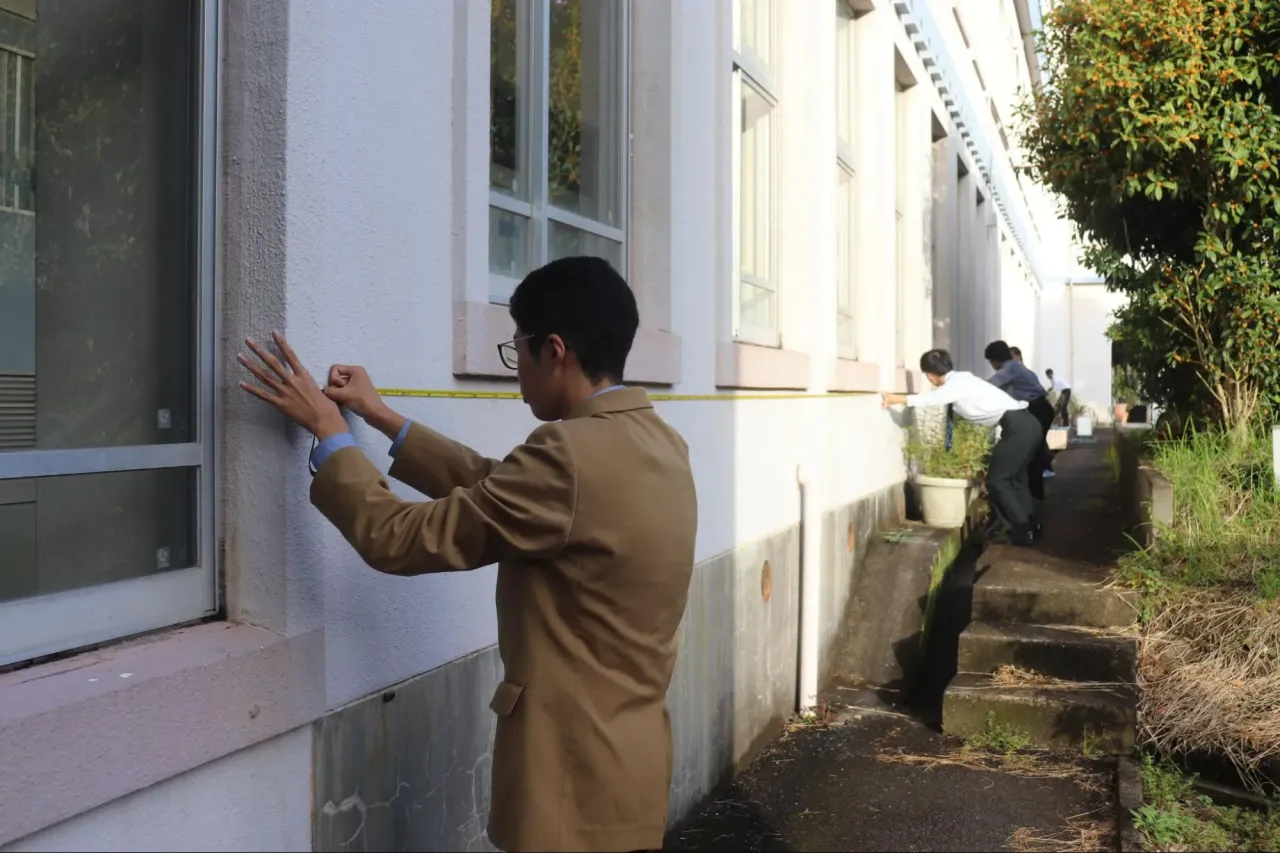 モデリングだけではなく、実際の校舎の長さを仲間と協力して計測
