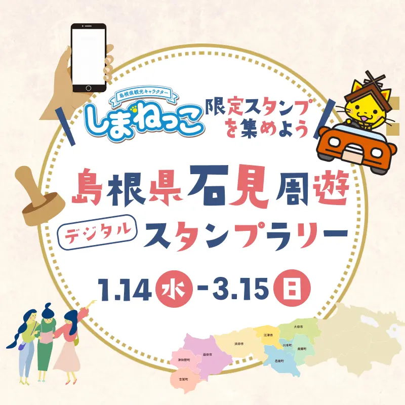 今回スタートした施策は、日本郵便 株式会社が公益社団法人 島根県観光連盟 および島根県教育委員会から業務を受託し展開するものだ。対象となるのは、浜田市や益田市などを含む石見地域の9市町と、益田市の日本遺産「中世日本の傑作 益田を味わう」の関連スポット。これら広大なエリアに点在する観光資源を、デジタルの糸で結びつけようという試みである。