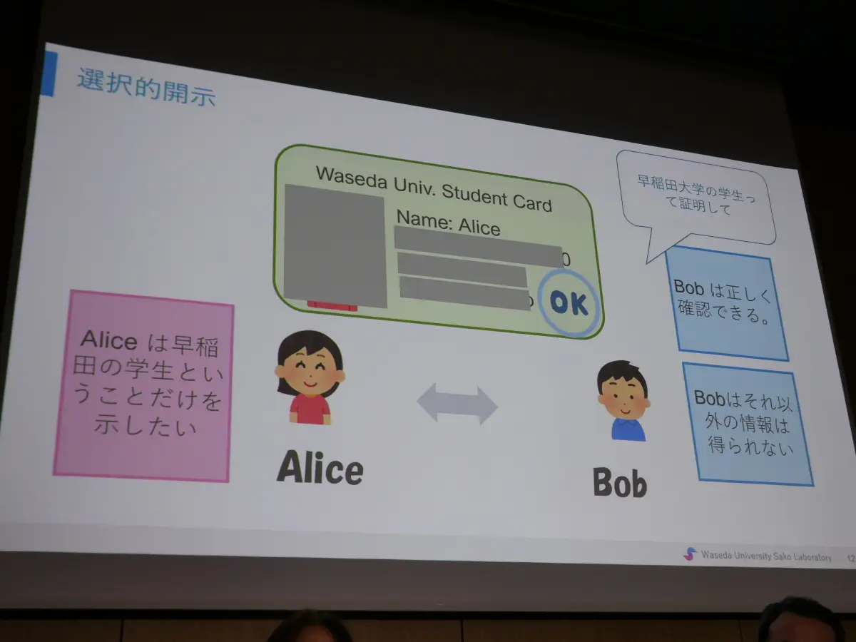 つまり、技術の問題だけでなく、制度とエコシステム設計が勝負になる。この点で、日本には見落とされがちな「手札」がある。佐古教授は、マイナンバーカード普及が8割を超え、公開鍵暗号を使う強固な本人確認インフラがすでにできていると述べ、「これを利用しない手はない」と強調した。さらに選択的開示を組み合わせれば、出したくない個人情報を隠しながら、VCによって「私は早稲田の教員である」といった属性を証明できる可能性を示した。