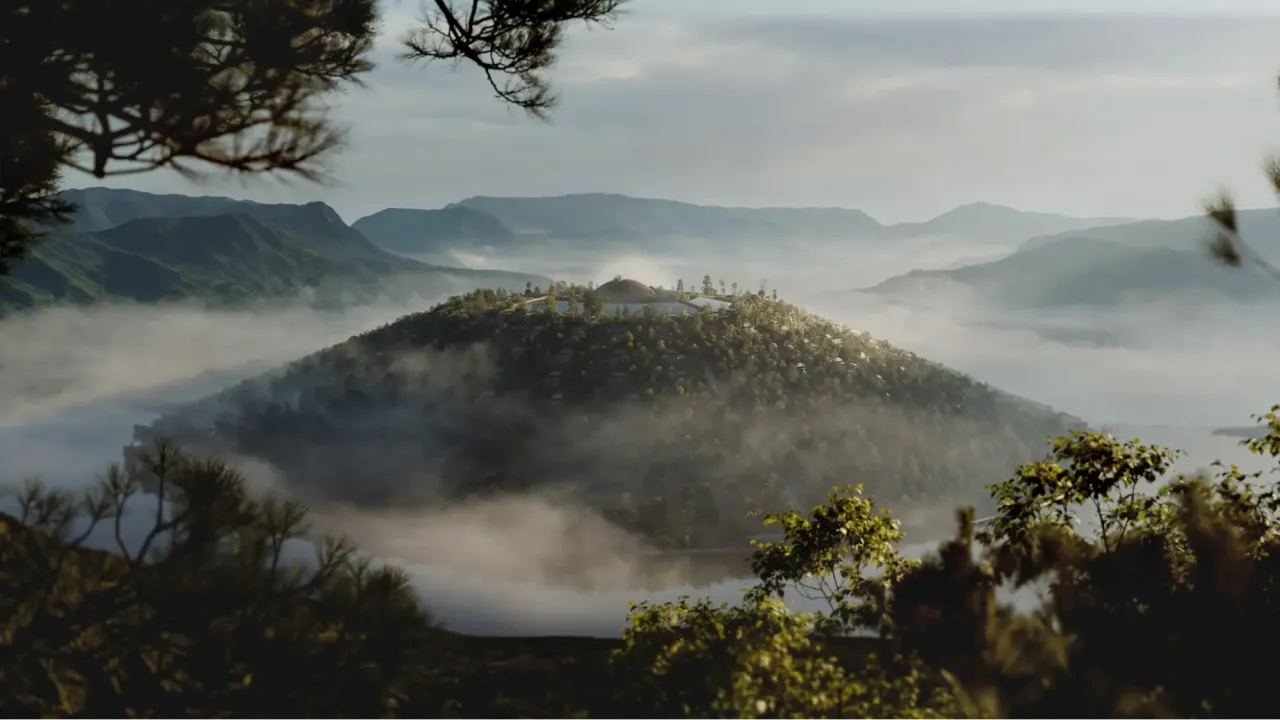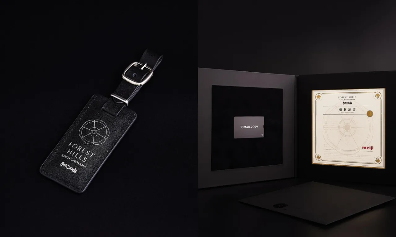 その実態は、メタバースプラットフォームcluster上で「きのこの山」を具現化するプロジェクト「フォレストヒルズ きのこの山」。発売当時から約50年間描かれ、実在しなかった山がバーチャルで形を成し、山内に建てられた分譲住宅をcluster上で購入できる。