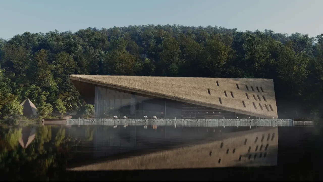 山と自然を大切にし、切り開いて開発したのではなく「共存している」世界観。SF的な未来感ではなく、温かみとコミュニケーションを重視した空間設計は、きのこの山というブランドの性格と深く結びついている。
