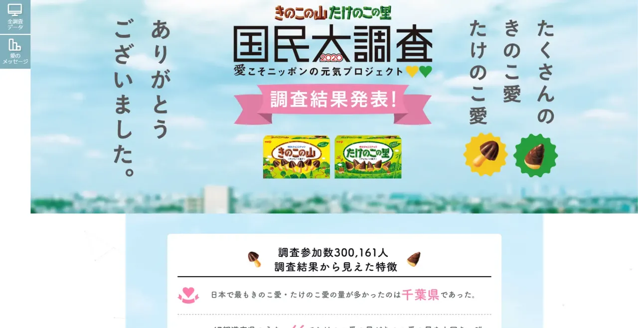 インターネットの普及とともに消費者の間で自然発生的に盛り上がった「きのこたけのこ、どっち派?」の論争だった。2ちゃんねるなどで大きな盛り上がりを見せたこの流れを受け、明治は「どっち派総選挙」を公式に立ち上げた。