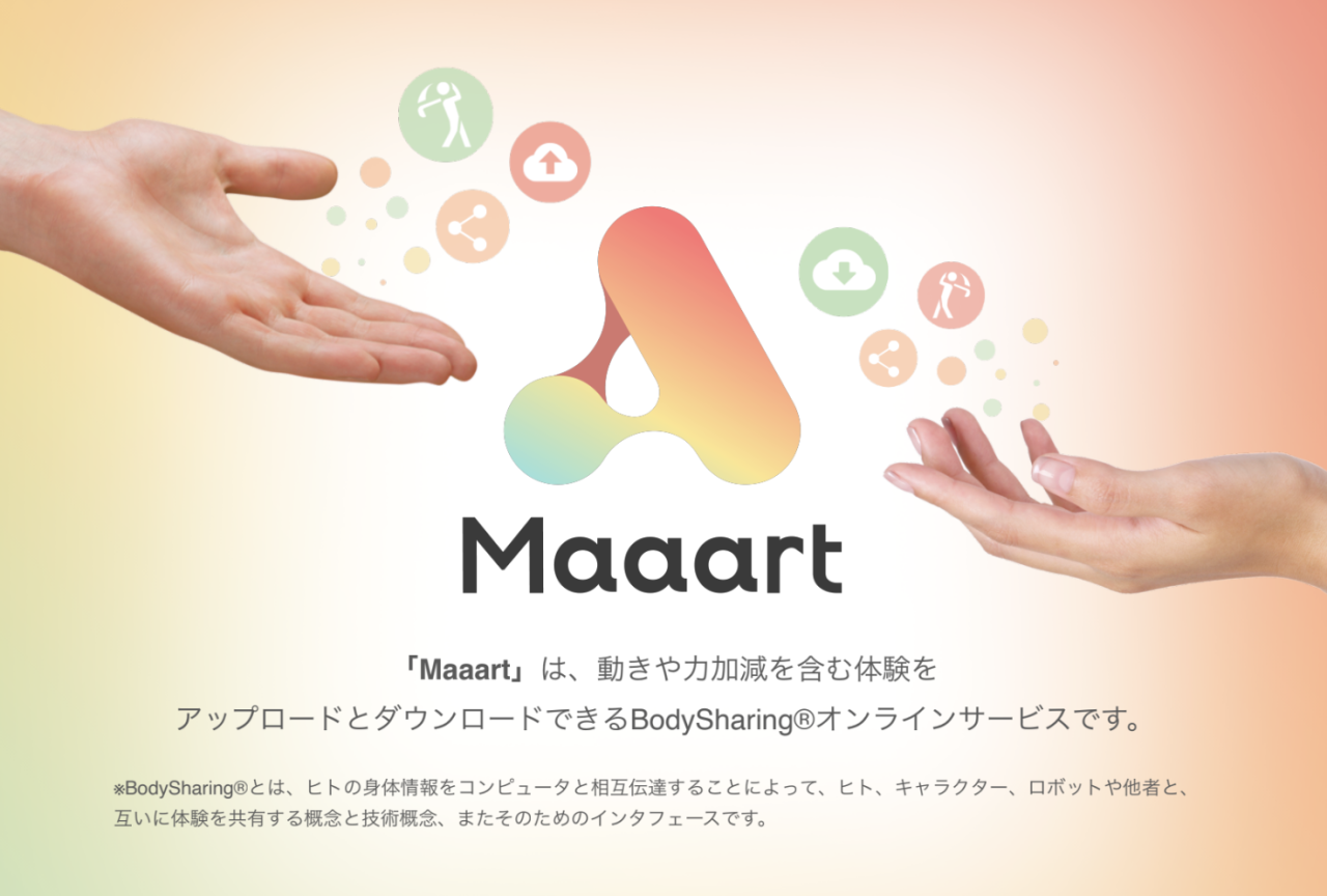 「Maaart」は、動きや力加減を含む体験をアップロードとダウンロードできるBodySharing®オンラインサービスです